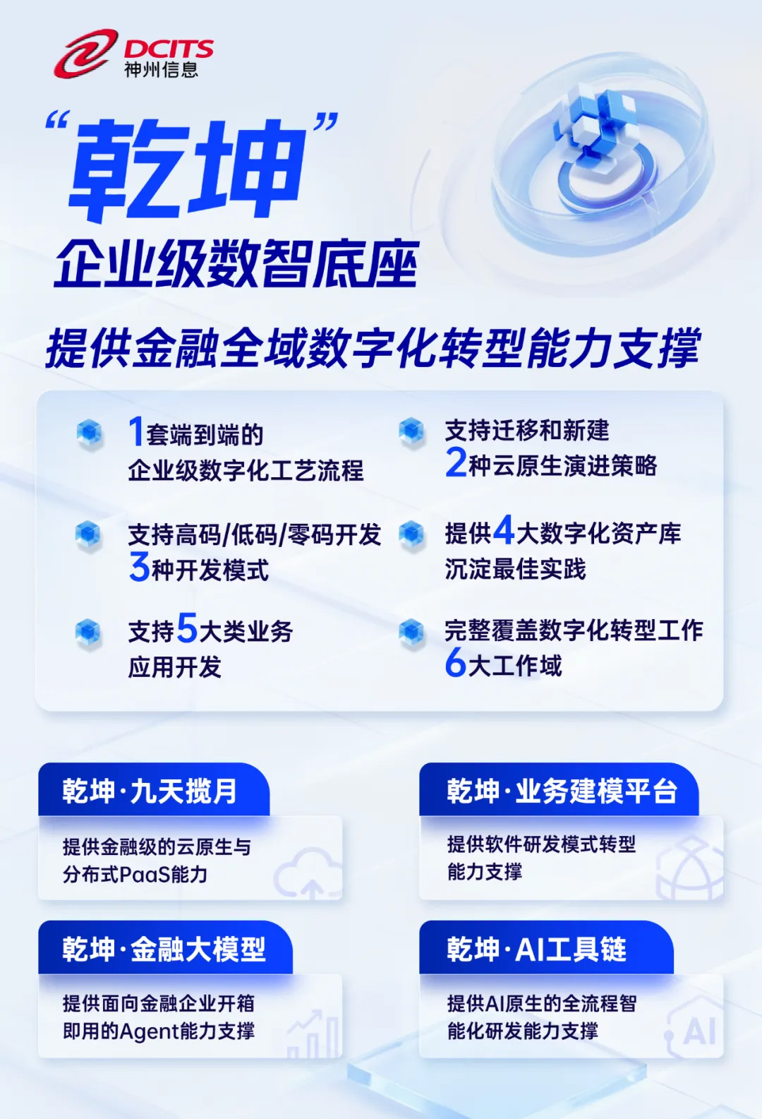 神州信息以“乾坤”企業級數智底座為核心引擎,其集成的金融大模型與AI工具鏈,將復雜的AI能力封裝為銀行技術人員可以輕松上手的“樂高積木”。建模工藝平臺更徹底打破了“部門級”豎井,實現全行“一套業務模型、一套IT架構、一套實施工藝”,從根本上降低了AI應用的實施門檻與長期運維成本。